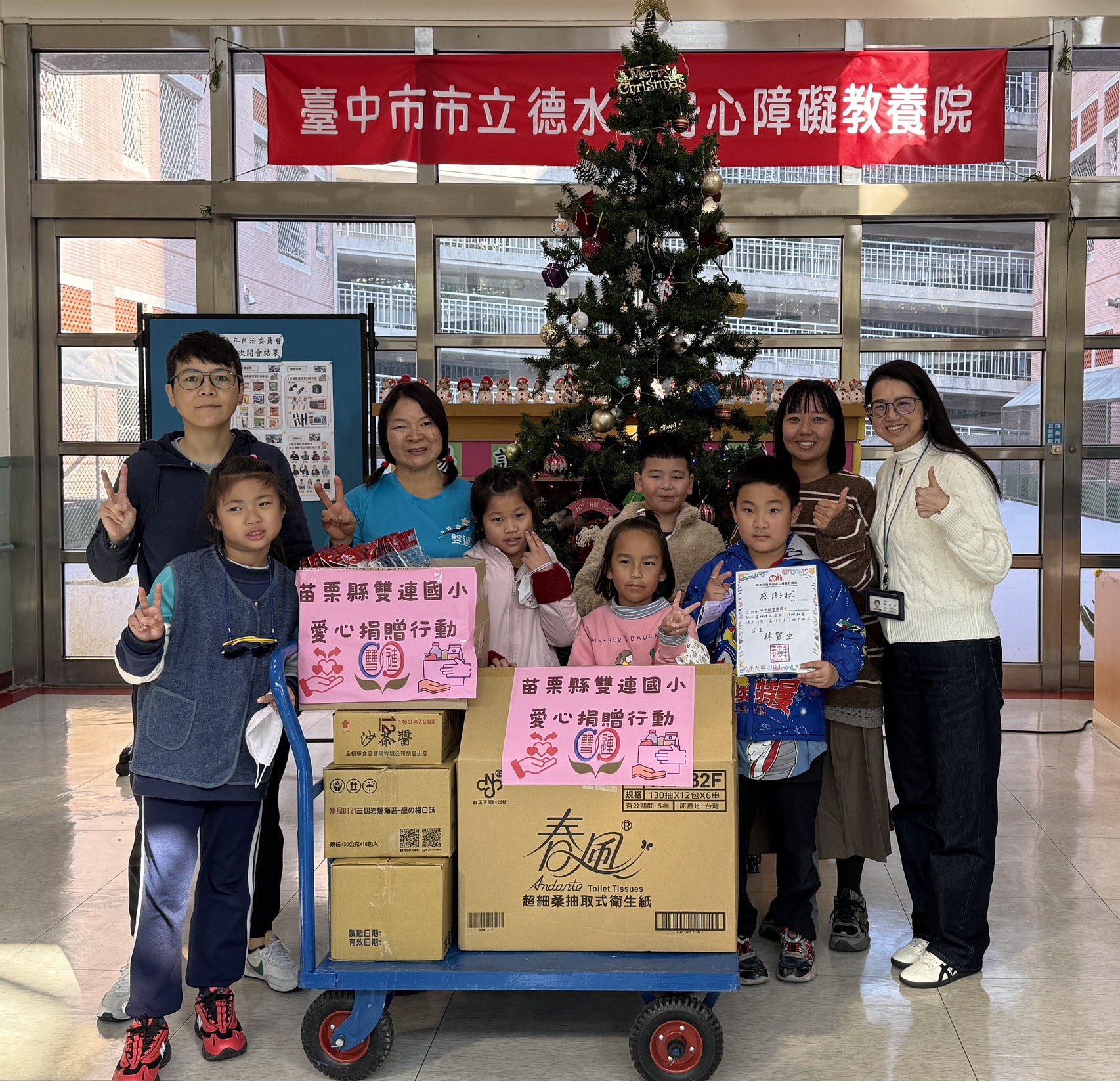 苗栗縣雙連國小日前舉辦了一場熱鬧又充滿意義的「雙連聖誕拍賣場」愛心義賣活動,活動結束後,孩子們更主動發起愛心行動,將跳蚤市場所得收入兌換成實用的民生物資,捐贈給德水園,將滿滿的關懷分享給需要幫助的人。