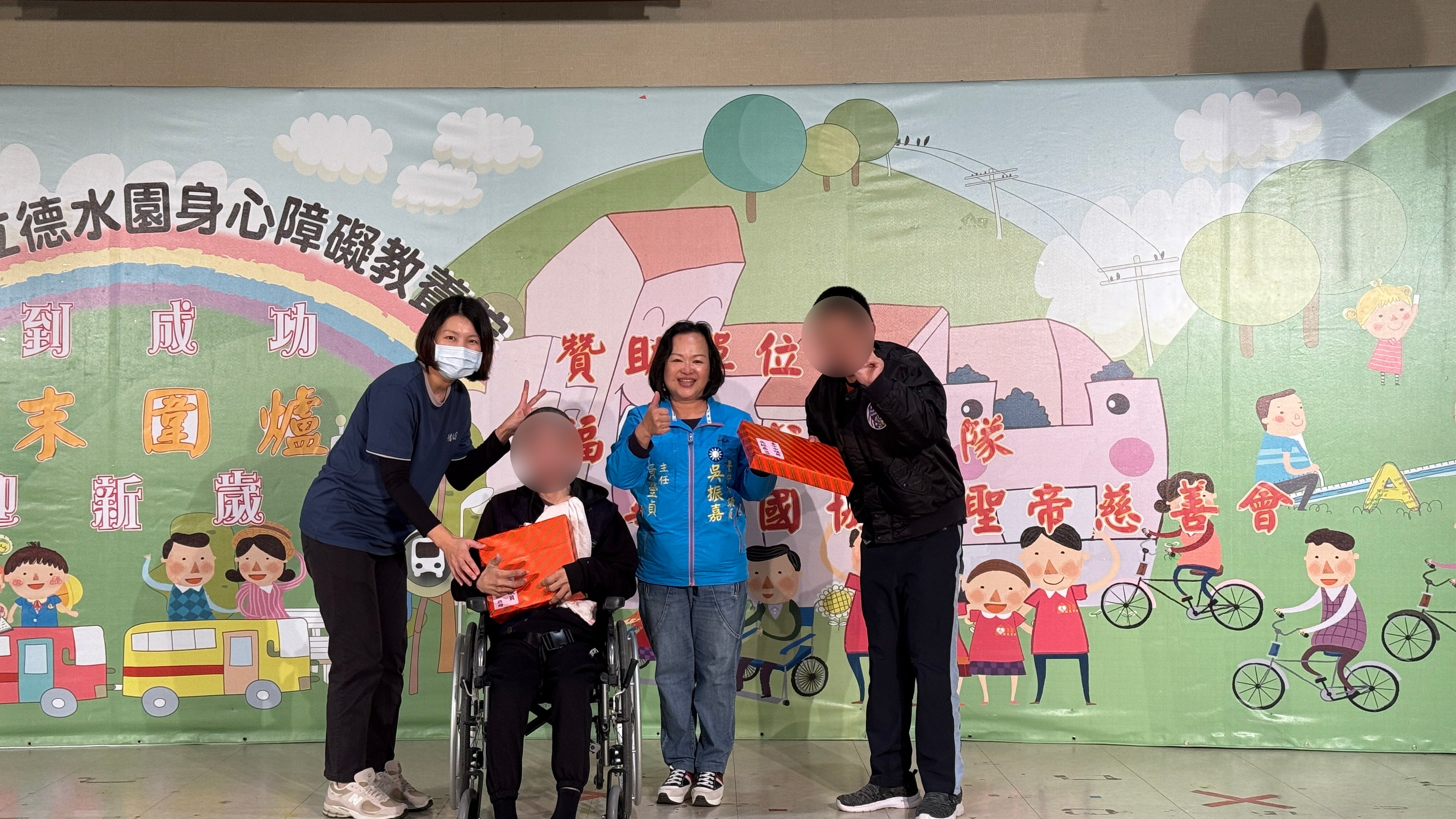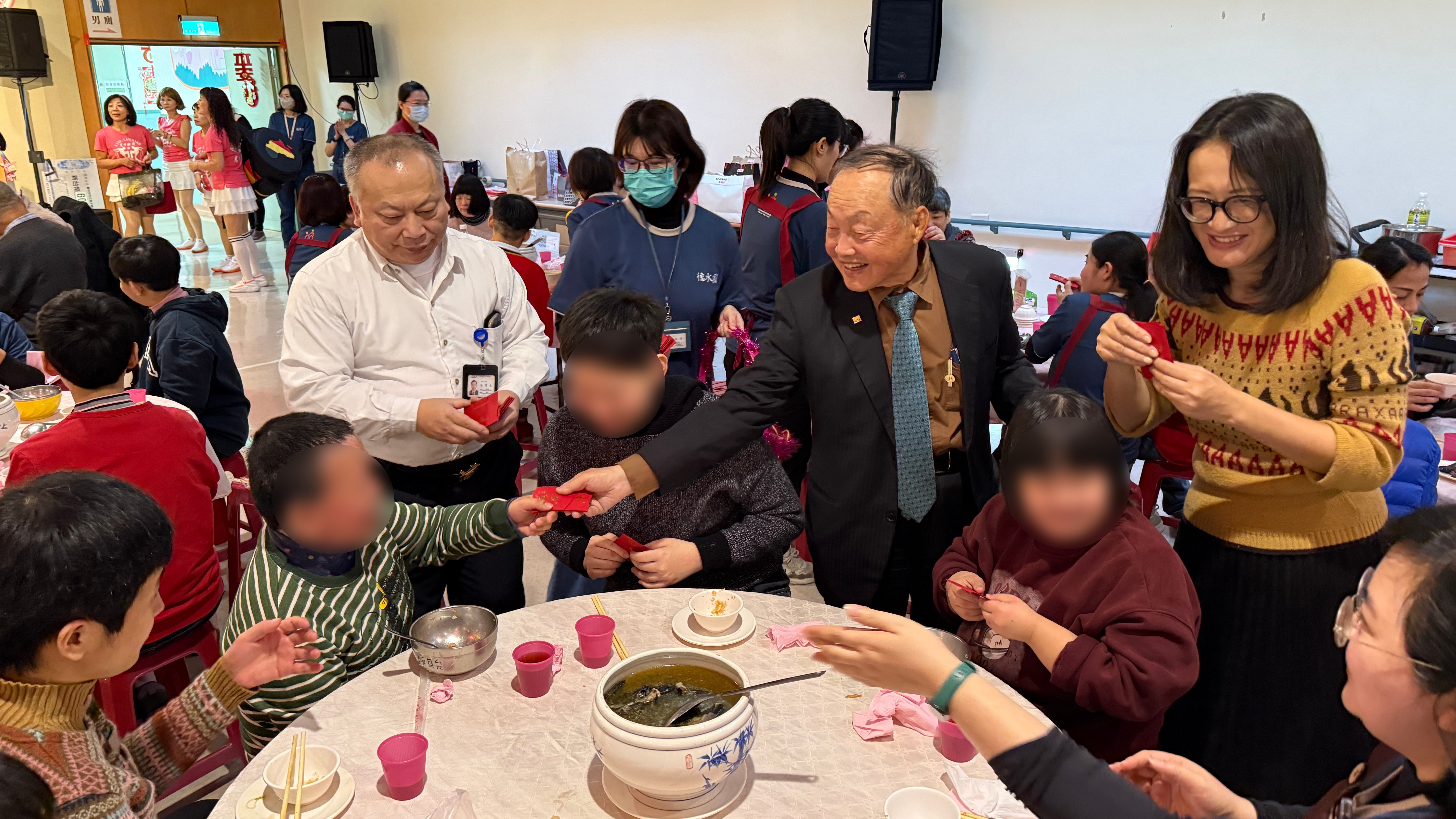 活動中,臺中市政府準備了春節小紅包,並由社會局副局長廖宗侯、財團法人臺中市私立家寶社會福利慈善事業基金會董事長童瑞龍、張心怡執行長、林寶生園長、王武林家長會長、東勢區區長翁培真、吳振嘉議員服務處主任黃瑩貞、古秀英議員服務處助理、茂興里里長傅琪芳、明正里里長吳萬明、吳慕偉老師,以及立委 蔡其昌 服務處主任 詹智翔 等貴賓一同發放給現場服務對象。紅包象徵吉祥、祝福與好運,讓這股喜氣洋洋的暖流充滿本院大禮堂,現場洋溢著新年快樂的音樂聲。